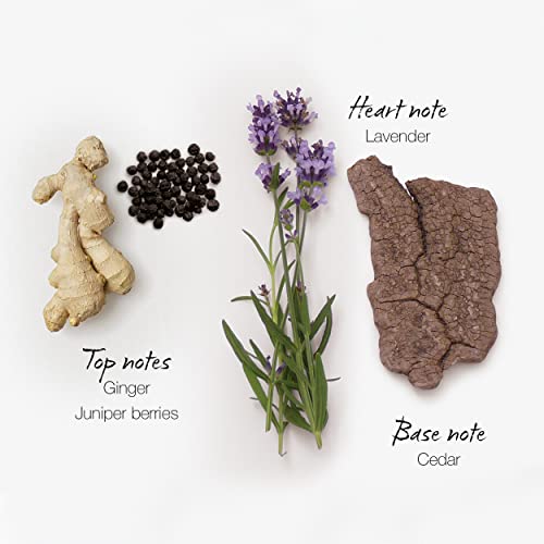 - WOODY AND SPICY OLFACTORY NOTES: Head notes: bergamot, ginger and juniper berries. Heart notes: lavender, geranium and vetiver. Bottom notes: sandalwood, leather&cedar accord.