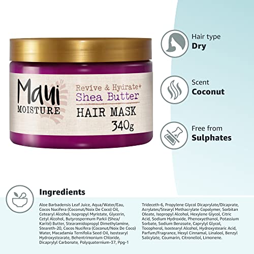 Maui Moisture Shea Butter Hair Mask for Dry Damaged Hair, 340g