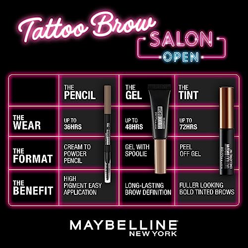 Home Make Up Maybelline New York Tattoo Brow Peel Off Eyebrow Gel Tint, Semi-Permanent Colour, Waterproof, Lasts up to 3 Days, Colour: Dark Brown, Duo Bundle