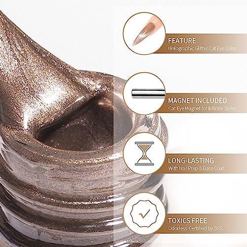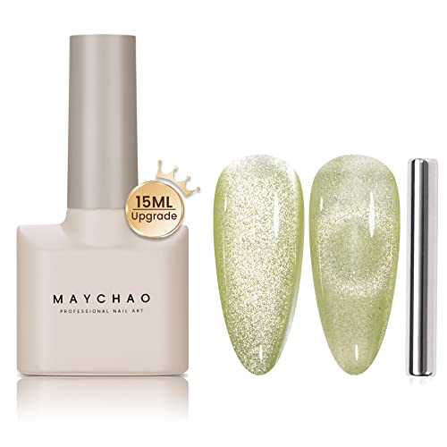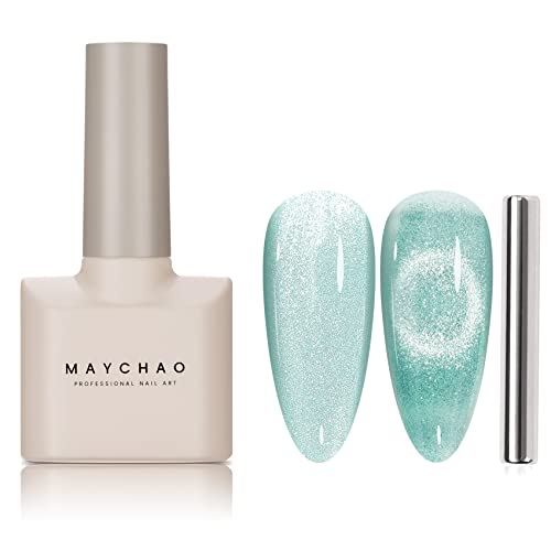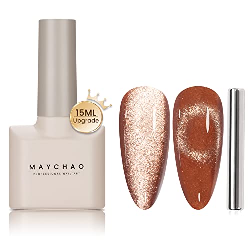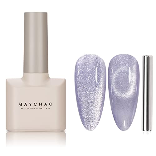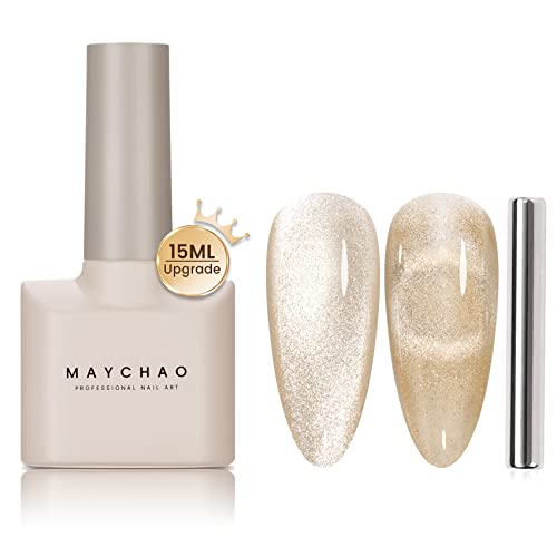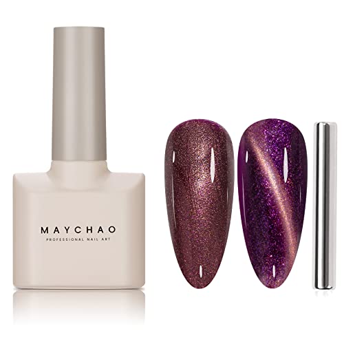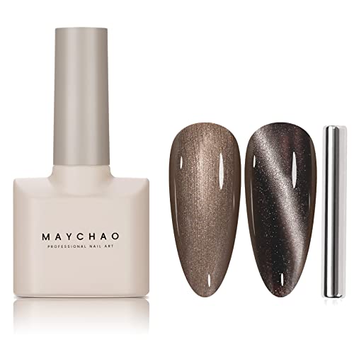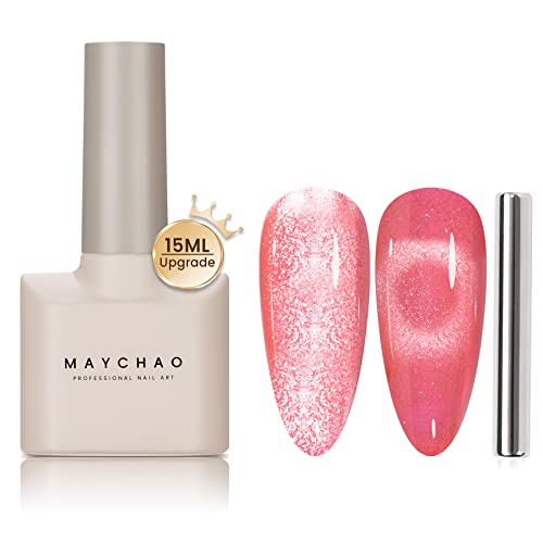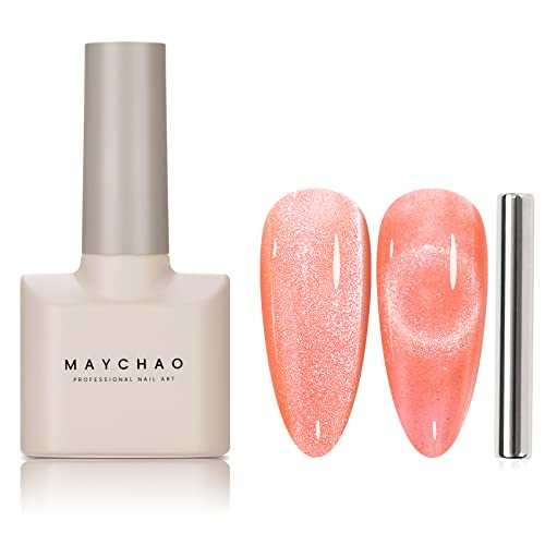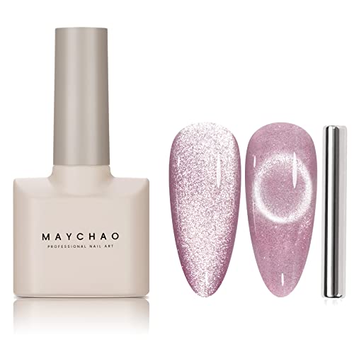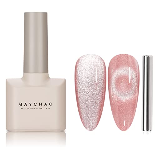 MAYCHAO 15ML Cat Eye Gel Nail Polish 1Pc Nude Magnetic Nail Polish with Magnet Soak off Holographic Cat Eye Gel Polish for Nail Art Manicure Salo