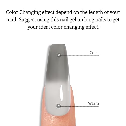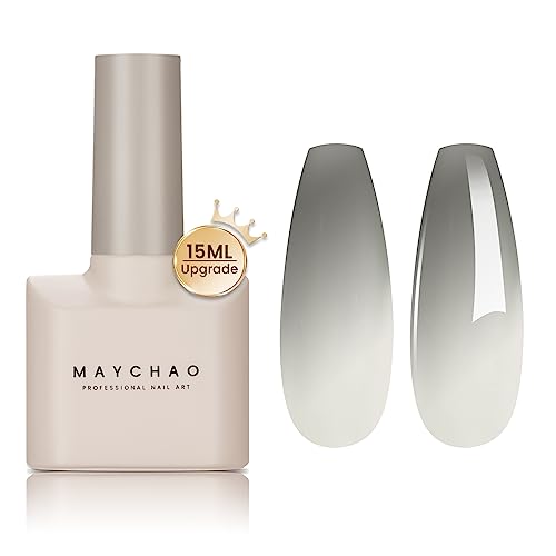 MAYCHAO Color Changing Gel Nail Polish Black to Light Grey Temperature Change Gel Polish Soak Off Nail Lamp Nail Art Manicure Salon DIY at Home
