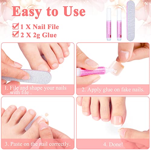 - Easy To Apply - We offer gel and nail files for these artificial toenails, first polish your toenails with the nail file, choose your nail tip size, then apply the sticky gel to cover the fake toenails over your nails.