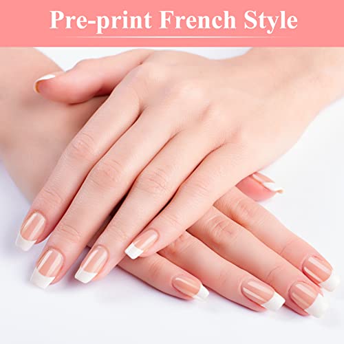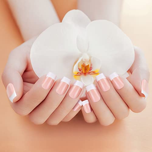 • French Design - Natural nude pink fake nails with white French nail edges design, fashionable and beautiful, and you don't need to spend time applying nail polish.