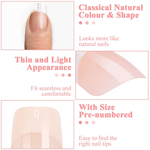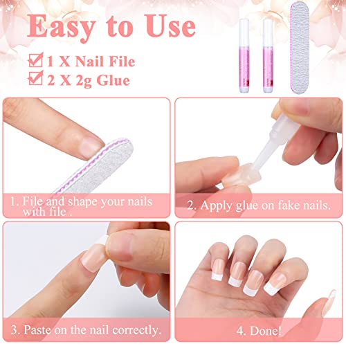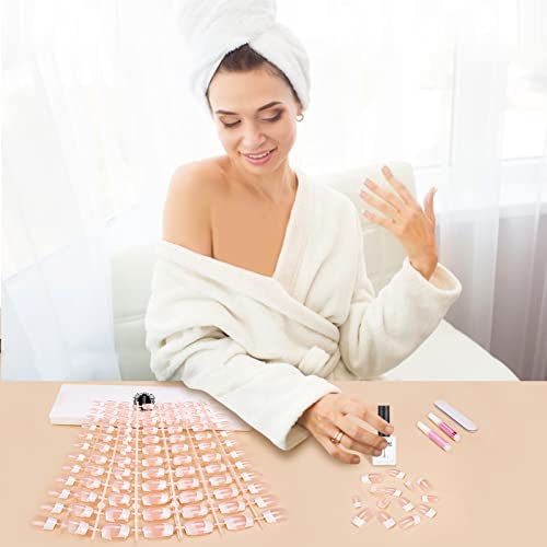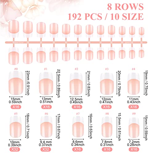 MELLIEX 192 Pcs French False Nails with Glue Nail Files, Nude Short Fake Nail Tips Full Cover Fake Nails for Women Girls Nail Decorations - 10 Si