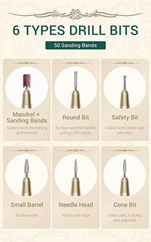 MelodySusie Electric Nail Files, Rechargeable Nal Drill Cordless Portable E File Professional Nail Drill Machine for Acrylic Nail, 6 Nail Drill B