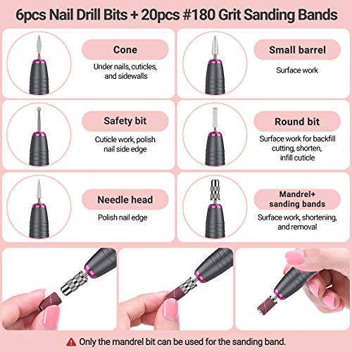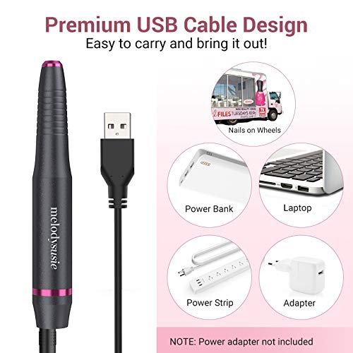 - Upgraded nail drill: USB design; coming with 6 kinds of professional metal bits (can works with all kinds of 3/32”shank bits) and 26 sanding bands perfect for grinding, carving, cutting, polishing