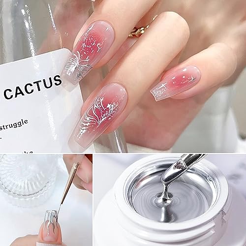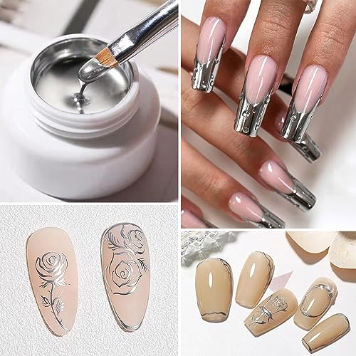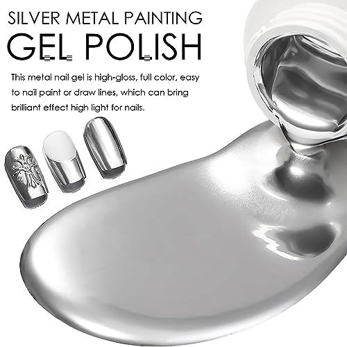 - 【Silver Metal Nail Gel】- The metal painting nail gel is high-gloss, full color, easy to nail paint or draw lines which can be used for flat coating, flower paint, liner paint, 3D sculpture and other free design. Bring brilliant effect high light for nails.