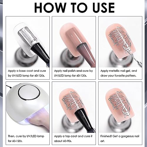 - 【Smoothly to Apply】- This metal gel polishing is made of a smooth formula,which can easily obtain nail salon-level effects,and can be used for sculpture nail painting art or direct full coating. Stimulate the imagination and design of nail art by using this wonderful liner gel.