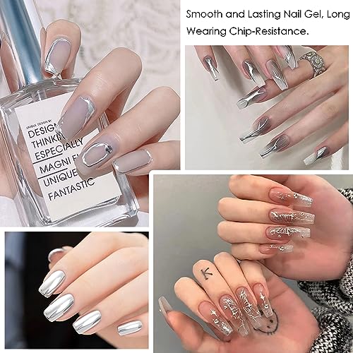 - 【Chrome Metallic Painting Gel Polish】- The silver metal nail polish ensure a smooth mirror effect. Different from other nail polish, ours is a metallic and glossy, creating high-gloss mirror effects on nails. A whole new attempt to give you a shining fingernail of your dream. The metall nail painting gel is suitable for all seasons.