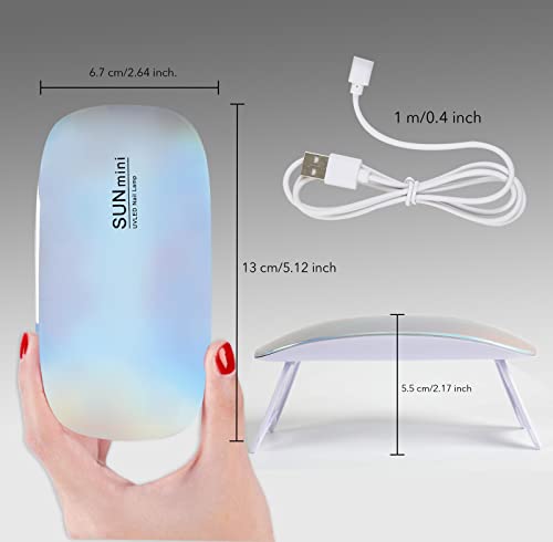 - 【POCKET SIZE】The UV light for nails is 5.1*2.5*0.6inch, with a 39.37inch USB cable and an instruction manual. Totally about 0.16 pounds, fold design makes this UV lamp easy to put in your makeup bag, handbag even in a wallet. The compact size is easy to carry, whether at home, nail salon, travel or party, to achieve nail freedom!