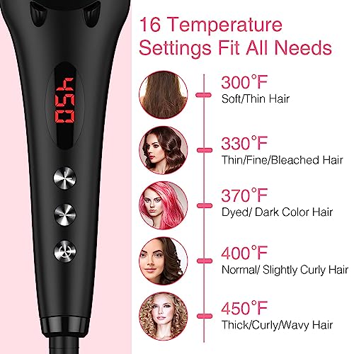 - 【TEMPERATURE LOCK & AUTO-OFF】Hold on "+" "-" setting buttons for 3 seconds to lock the temperature. Ensure maximum safety and optimum performance at all times. As a built-in safety feature, the hairbrush will automatically shut-off in 60 minutes, if not used