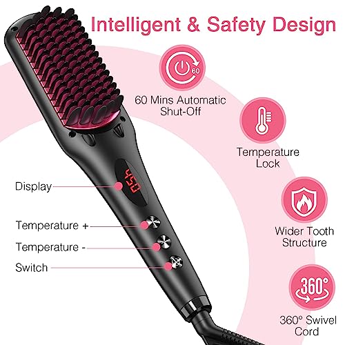 - 【EASIER TO USE & TRAVEL-FRIENDLY】Straightening your hair at any angle with the 360° swivel power cord. In addition, the hairbrush voltage is 100-240V, you can take it anywhere and get smooth and silky hair in minutes
