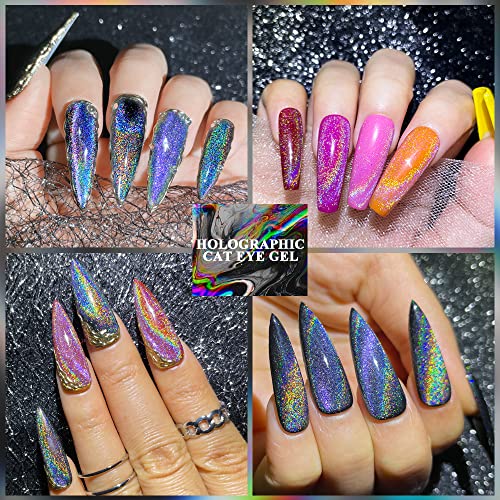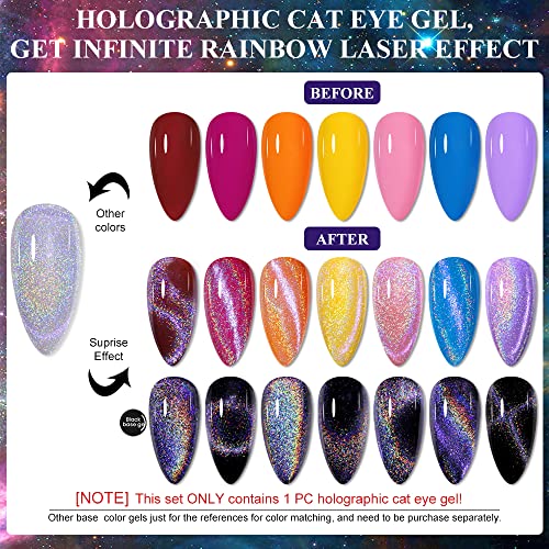 - ✨ Multiple Applications: 1 color corresponds to multiple colors. Rainbow holographic 9D cat's eye gel can match any color gel as the basic color. Quickly match this cat's eye gel.