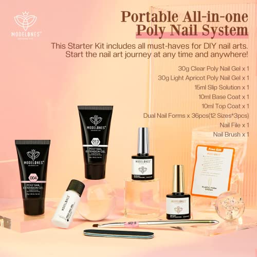Modelones Poly Nail Gel Kit, 30ml 2PCS Clear Nude Colors Nail Extension Gel with Slip Solution New Version Builder Enhancement Professional Start