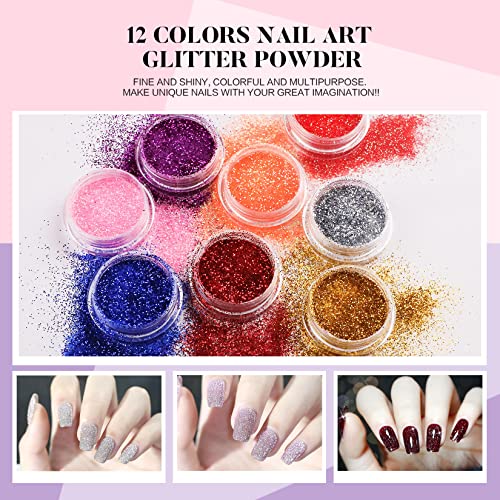 - 💝12 COLORED GLITTER POWDERS IN ACRYLIC NAIL KIT: Glitter powders come in 12 different colors in this acrylic nail kit, fine and shiny, colorful and gorgeous, add charming by mixing acrylic powders to create unique and sparkling nail extensions or nail carving. Optimized for all seasons.
