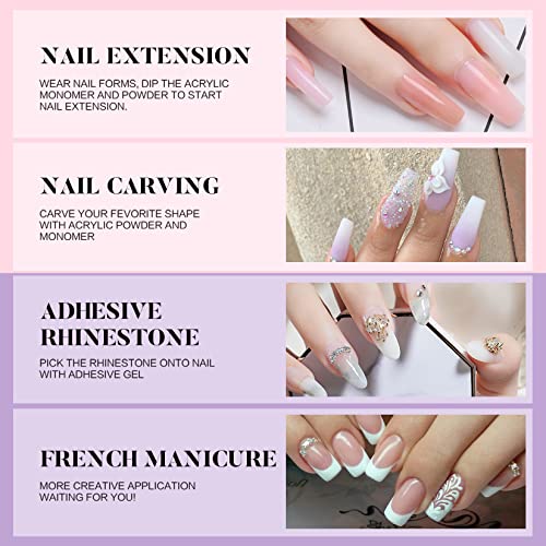 - 💝ACRYLIC NAIL KIT - ACRYLIC POWDER SET: The acrylic powders included in this acrylic nail kit is available in 3 colors, clear, white and pink, developed with non-yellowing formula, bubble-free polymers, providing flawless consistency, superior adhesion, and exceptional strength, providing natural-looking to nail enhancements.
