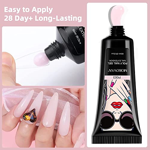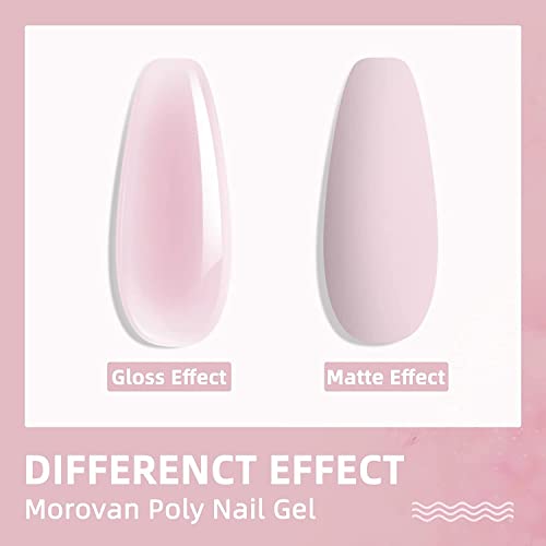 - 🎀LONG LASTING POLY NAIL GEL: Morovan Poly gel nails build beautiful nail extensions in 3 minutes, even for beginners! If applied properly, it can last up to a month. This poly gel nail is more flexible and lighter than acrylic nails and stronger than hard U V gel nails, and you will be proud of poly nail gel lustrous shine and finish.