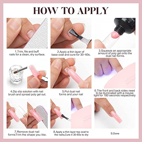 - 🎀SUITABLE TO NAIL BEGINNER: Morovan poly gel nail is easy to use that can be suitable for beginners who can apply nail extensions within 3 minutes. With the help of slip solution, the poly gel nail will not be sticky and you can make the shape you like, then it can be quickly dried by LED/U V lamp, the nail art made like salon can DIY at home.