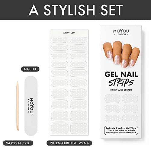 - All Set – Your nail art kit includes 20 semi-cured gel stickers for nails, a wooden cuticle stick, and a nail file. The set is vegan, not tested on animals, and contains no harsh chemicals. Disclaimer: The shade on the box may slightly differ, but rest assured, the nail strips inside match the color as shown on the images above.