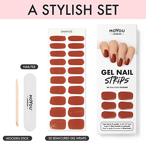 - All Set – Your nail art kit includes 20 semi-cured gel stickers for nails, a wooden cuticle stick, and a nail file. The set is vegan, not tested on animals, and contains no harsh chemicals. Disclaimer: The shade on the box may slightly differ, but rest assured, the nail strips inside match the color as shown on the images above.