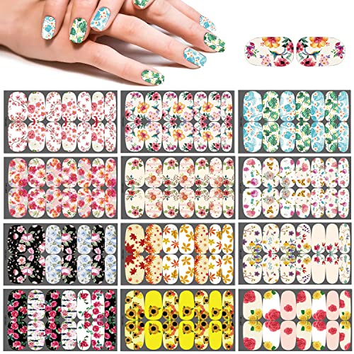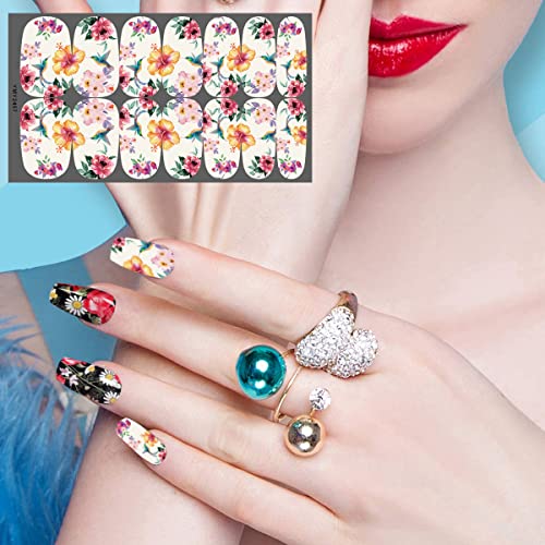 - Package contents: 12 Sheets Flower Maple Leaf Hawaii self-adhesive Full nail stickers and 1pcs nail file.Fashion Trend Design.
