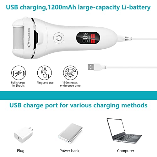 • 【Long battery life & Wired and Wireless use & USB Rechargeable Foot File】Thanks to the built-in 1200mAh battery, the electric callus remover will offer you an autonomy of up to 150min after a full charge of 2 hours; directly plugged in to continue pedicure care if the electricity runs out halfway; Rechargeable with USB cable, compatible with computer, power bank and outlet.