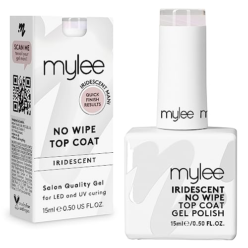 - Iridescent No Wipe Top Coat - Want a heavenly glow? Meet the Iridescent No Wipe Top Coat. This'll give your mani a sheer iridescent finish that shifts divinely in the light. It works to protect your mani for up to 3 weeks, shielding it from chipping and scratching for a salon-quality finish. What's more, there's no top coat stickiness to wipe away with our special formula, so you're good to go straight out of the lamp. Totally angelic