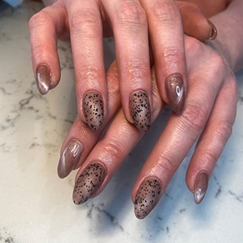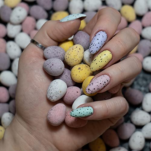 - Speckle Top Coat - Give your manicure a stunning black speckled matte finish with this top coat. Perfect for a mini-egg effect at Easter over your favourite pastel polishes! Packed with irregular black fragments and with a matte finish you can protect your polish from natural wear and prevent chipping and peeling for a long lasting manicure. Perfect over any MyGel polish shade, the 5-In-1 Builder Gel and Polygel! With no tacky inhibition layer to remove, you're good to go once cured!