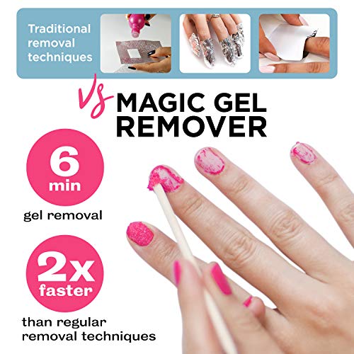 - Removes gel nail polish – The Mylee Magic Gel Remover works by breaking down the gel nail polish on the nail surface, and it will automatically break down in a matter of minutes. For removal of gel nail polish and nail glue. Make our Magic Gel Remover an essential part of your nail care and manicure kit. Apply cuticle oil around the fingers and hand lotion to rehydrate and condition. With Magic Gel Remover you only need the bottle, making using it hassle-free, easy to store, and travel-friendly