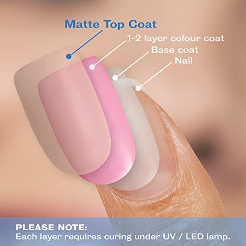 - No-wipe matte finish - Simply apply like a regular polish and cure with a UV or LED lamp to reveal a gorgeous matte effect. Suitable for use on natural nails, acrylic nails, false nails and tips, requires curing under UV or LED lamp which is sold separately