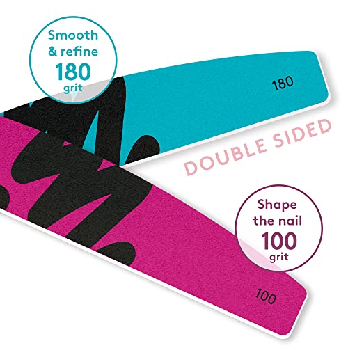 - TWO SIDED - These two sided nail files are perfect for the ultimate finish with two different grits: 100 (pink side) and 180 (yellow side).