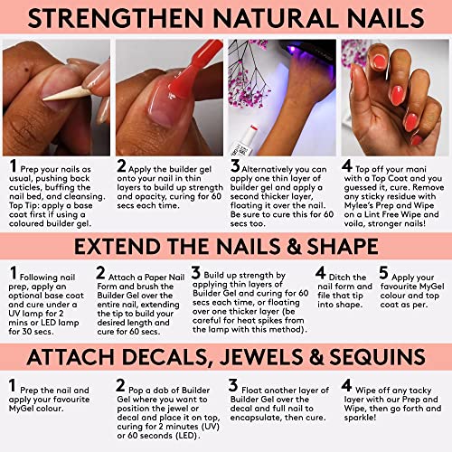 - Easy to apply – simply brush on like ordinary polish to protect and help grow your natural nail length. Alternatively, use with a Mylee Paper Form to build up artificial length on the spot