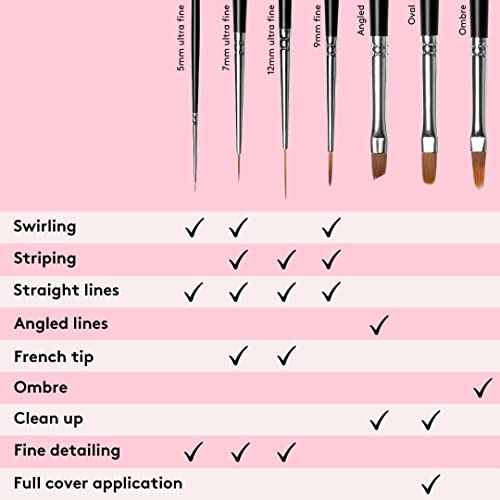 - Long and slender: This ultra fine synthetic haired liner nail art brush has a long and slender design which is particularly useful for creating straight lines or for use as a striping brush