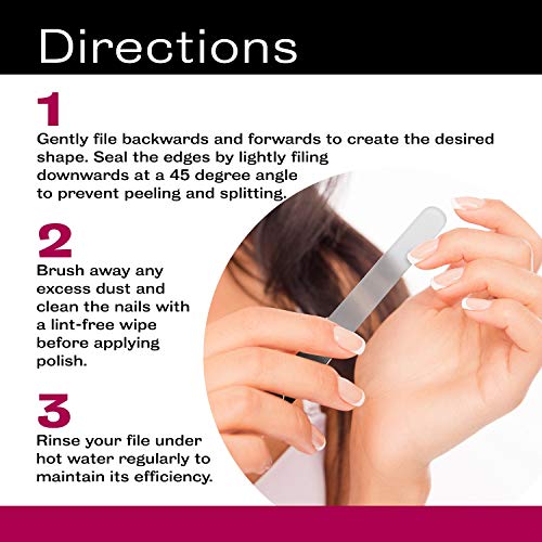 - HYGIENIC – Glass files are simple to clean and sterilise, helping you to achieve a safe, hygienic manicure at home or in the salon. While traditional emery boards can harbour bacteria, glass files can be easily washed with soapy water. This reduces the risk of nail infection or cross contamination, and helps your nails to grow healthy and strong.