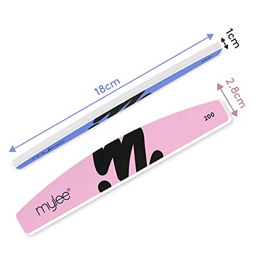 - Refines & preps before nail art – The 200 grit side of the Mylee Dual Grit Foam Nail Files is perfect for refining your gel mani. After curing your gel polish under a UV lamp, use this grit to buff and perfect your manicure. This grit is also great for prepping your nails before applying nail art or a top coat