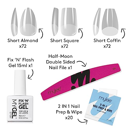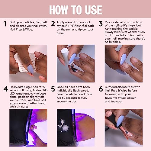 - Application accessories – The Mylee Fix ‘N’ Flash Shorts Kit also come with all the key application tools, including Prep & Shine Wipes, a Half Moon Nail, File 100/180 and Fix ‘N’ Flash Gel