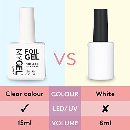 - Easy to use – Simply apply a thin layer, then cure to leave a tacky surface that’s perfect for your chosen Mylee Nail Art Foils to adhere to. Rub the foil onto the nail to transfer, then lift off and apply a layer of MyGel No Wipe Coat and cure