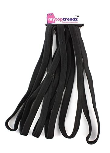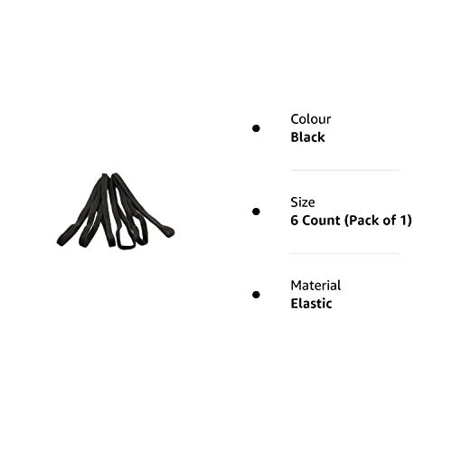 - Set of 6 Black Long Elastics Long Black Elastics Headband Thick 10mm wide