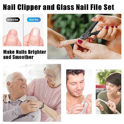 - ✂️✂️Multi-Usage Nail Cutter & Glass Nail File – It's usually used to trim fingernails and toenails. If you have very thick nails, then our professional ultra sharp nail clippers are perfect for you. Best clipper for shortening nails, such as natural nails, acrylic nails, nail extension, and false nails. The glass nail file can make your nails more shiny and smoother.