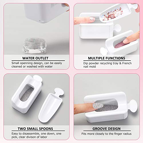 - Practical tools for nail design: the nail powder storage box is designed as a dip powder recycling system with 2 removable trays, works really well for applying dipping powder and pouring loose powder, it can also effectively reduce waste; After nail design, you can use the dust brush to remove excess powder