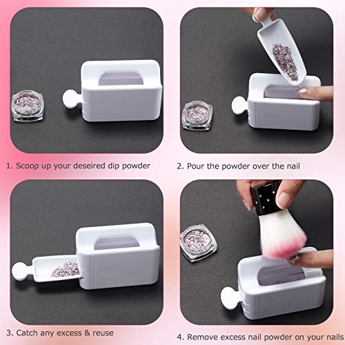 - Convenient to operate: just put your finger on the tray and then pour your favored nail powder on your fingernails, the tray under your nail will store the excess powder; This way of apply nail powder will be more time-saving and helpful with even coverage, without damage the nail polish in the nail, work well for both glitter and dip powder