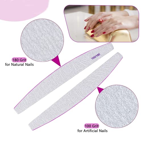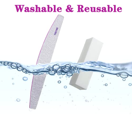 - 【Nail Files Set】- 10 pieces Half-moon shaped nail files and 5 pieces buffer sanding block, which meet most of your needs on nail salons or home nail DIY.