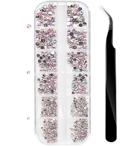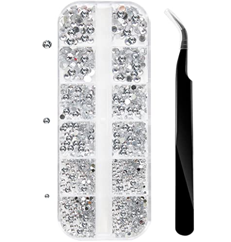 Nail Gems, Flat Back Crystal Rhinestones with Pick Up Tweezer for Nail and Face Art, Craft Decoration, 1500Pcs, 3 Sizes Nail Gems, Flat Back Crystal Rhinestones with Pick Up Tweezer for Nail and Face Art, Craft Decoration, 1500Pcs, 3 Sizes