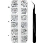 Home Nail Care Nail Gems, Flat Back Crystal Rhinestones with Pick Up Tweezer for Nail and Face Art, Craft Decoration, 1500Pcs, 3 Sizes