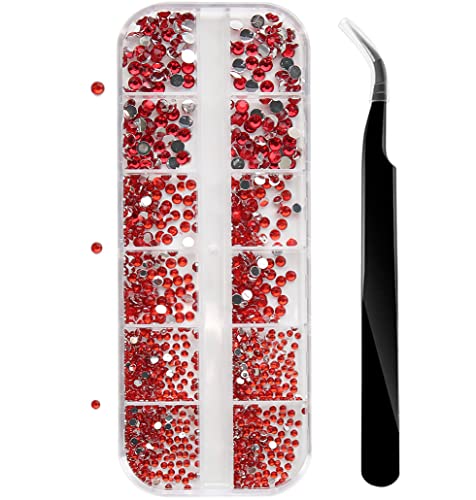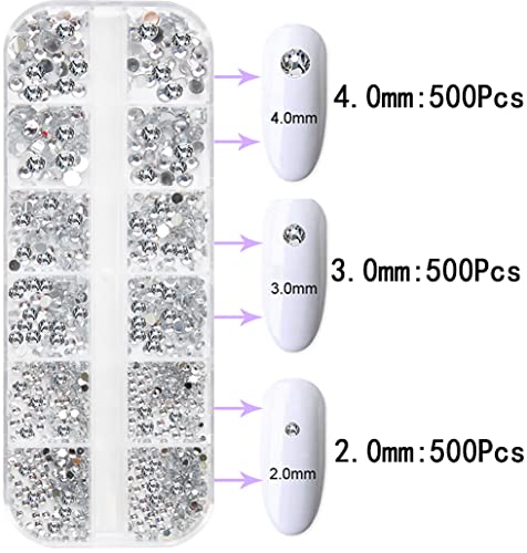 Nail Gems, Flat Back Crystal Rhinestones with Pick Up Tweezer for Nail and Face Art, Craft Decoration, 1500Pcs, 3 Sizes
