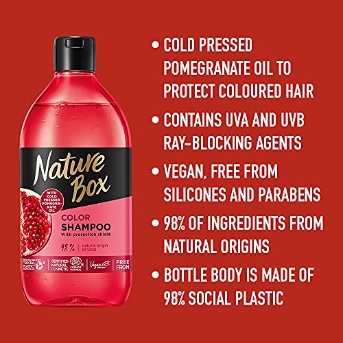 Nature Box Colour Shampoo (385ml), Natural Shampoo for Coloured Hair, Made with Cold-Pressed Pomegranate Oil, Cleanses Hair Without Weighing Down