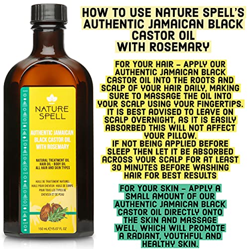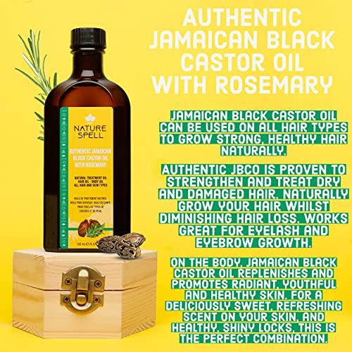 Nature Spell Authentic Jamaican Black Castor Oil with Rosemary for Hair & Body 150 ml - Authentic JBCO For All Hair Types - Natural Hair Growth - Nature Spell Authentic Jamaican Black Castor Oil with Rosemary for Hair & Body 150 ml - Authentic JBCO For All Hair Types - Natural Hair Growth -