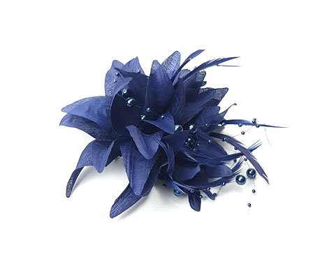 Navy Blue Beaded Feather Fascinator Beak Clip Brooch Pin