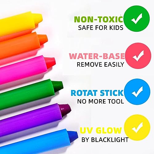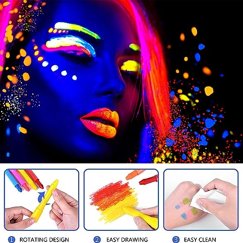 - 【 NEON UV BODY CRAYONS】Neon UV fluorescent fun is here! For carnival crazy colour that dazzles in natural light and illuminates big-time under UV lights /