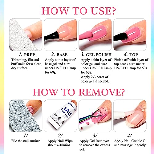 - 💚HEALTHY GEL POLISH - Healthy ingredient with low odor. No harsh ingredients or adhesives that lead to damaged nails. Only used for nail and non-direct contact with mouth, eyes. Wash immediately if contact occurs. Keep the products away from the pregnant and the kids.